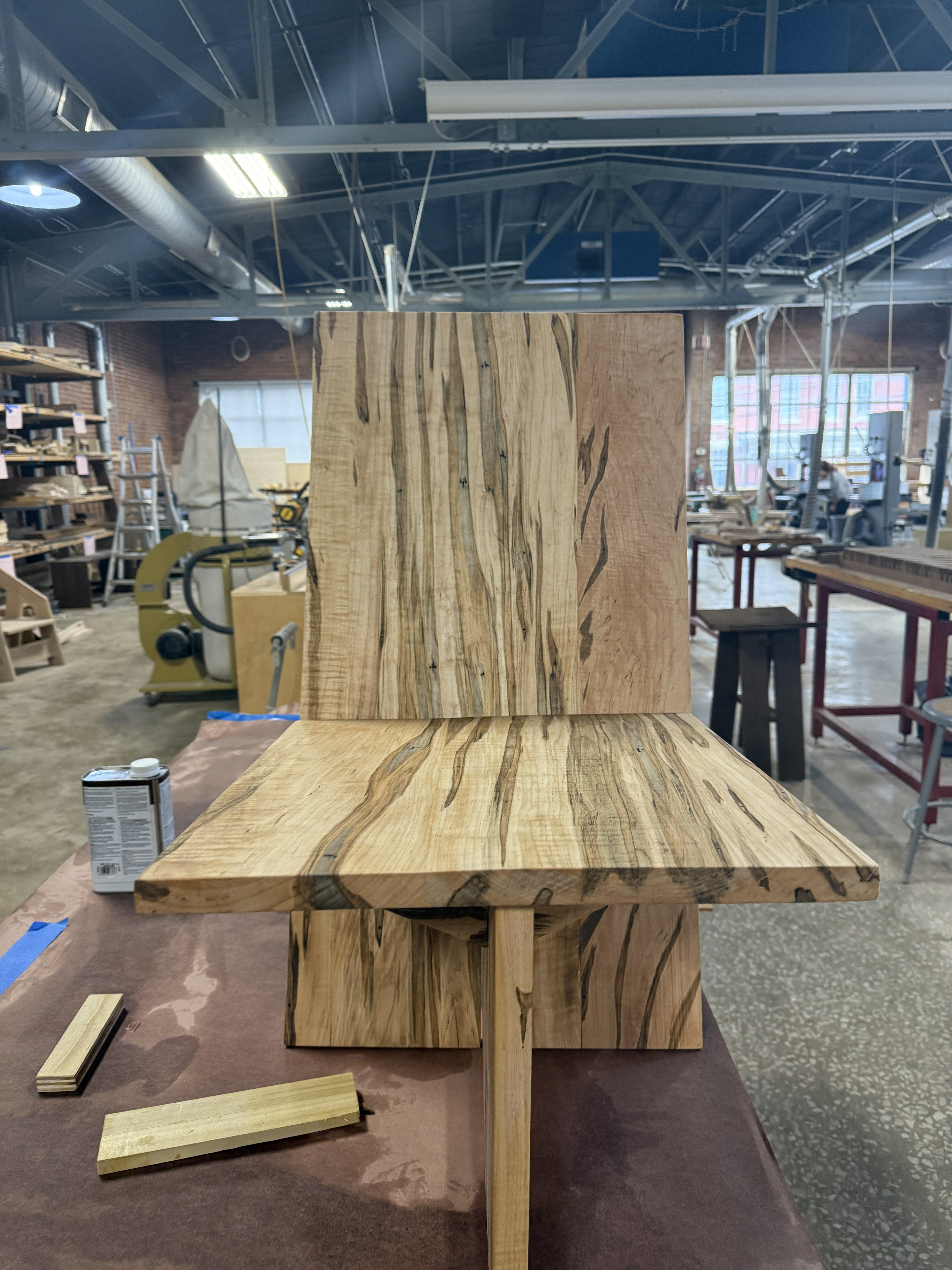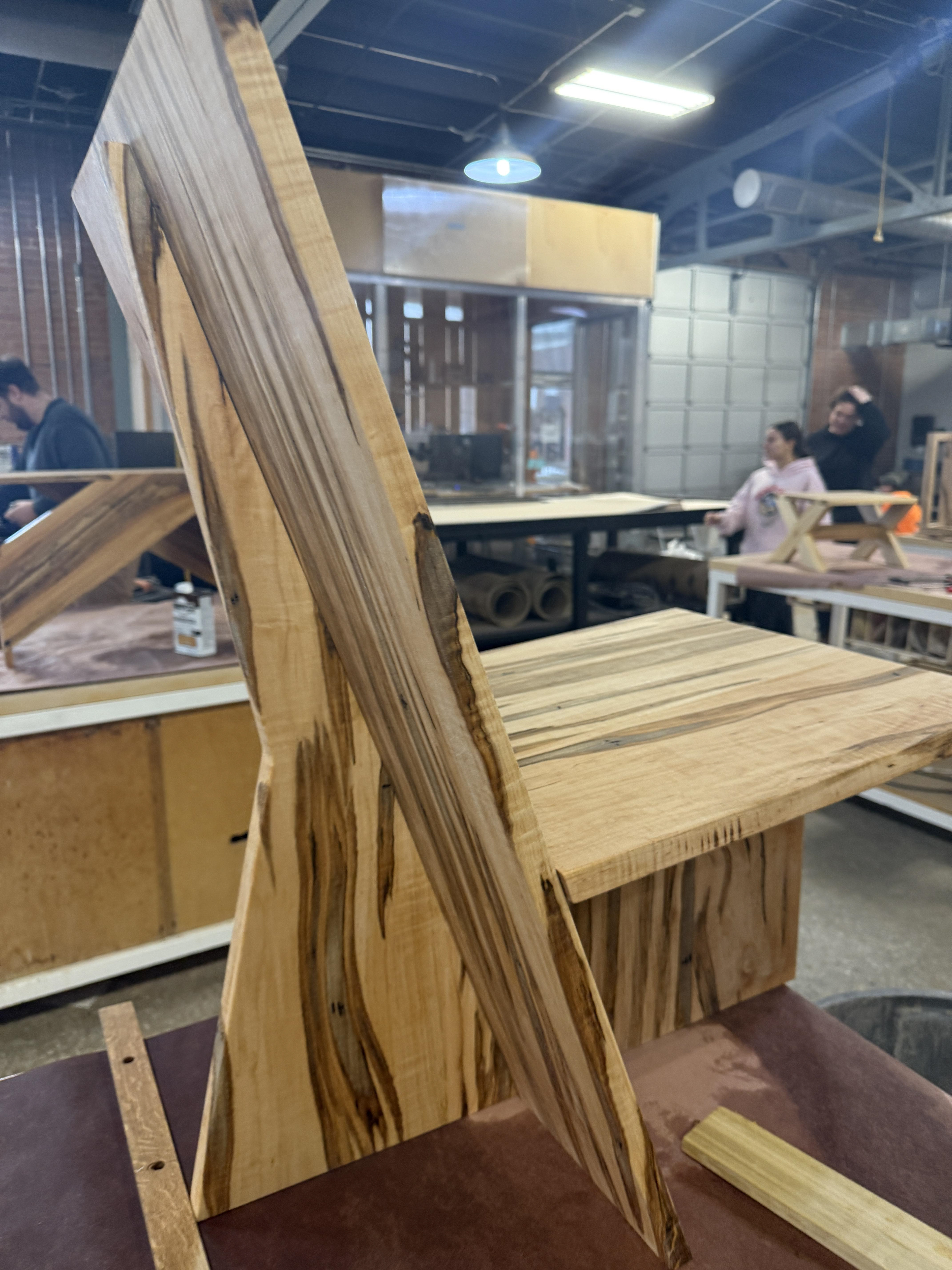 The chair was finished with danish oil to bring out the rich variation if the wormy, curly maple I chose to work with.